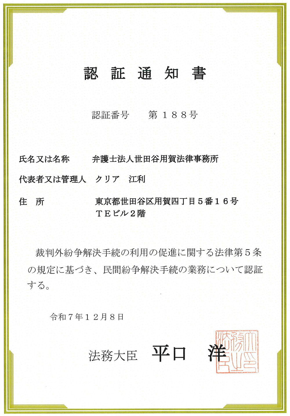本業務は、弁護士法上の利益相反、秘密保持義務を生じない限り、弁護士法も許容する範囲の業務です(裁判外紛争解決手続の利用の促進に関する法律第5条、第6条第5項及び弁護士職務基本規程第27条第5号・弁護士法第25条第5号参照)。