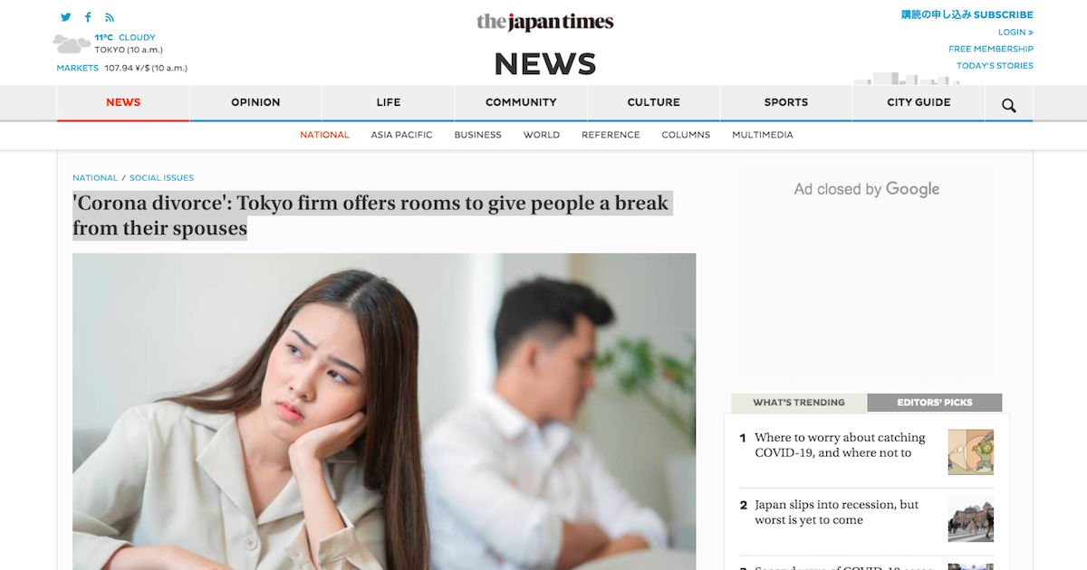 COLUMN2020.05.20 | Vol.95【メディア掲載】共同NEWSとJAPAN TIMESにインタビュー記事が掲載されました
